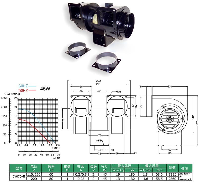 1、雙進(jìn)風(fēng)雙出口高速風(fēng)機(2800RPM~3200RPM);